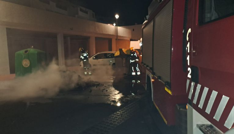 Los bomberos del Consorcio de Seguridad y Emergencias han tenido que extinguir en la madrugada de este miércoles el incendio de un contenedor en la Calle Teide de Puerto del Carmen, en Tías.