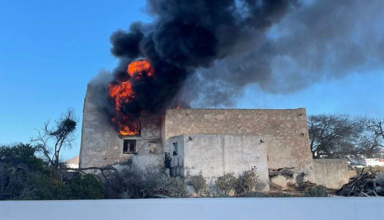 Los bomberos apagaron el incendio de una vivienda abandonada en Tinajo. El fuego se produjo sobre las 17.00 horas de este lunes.