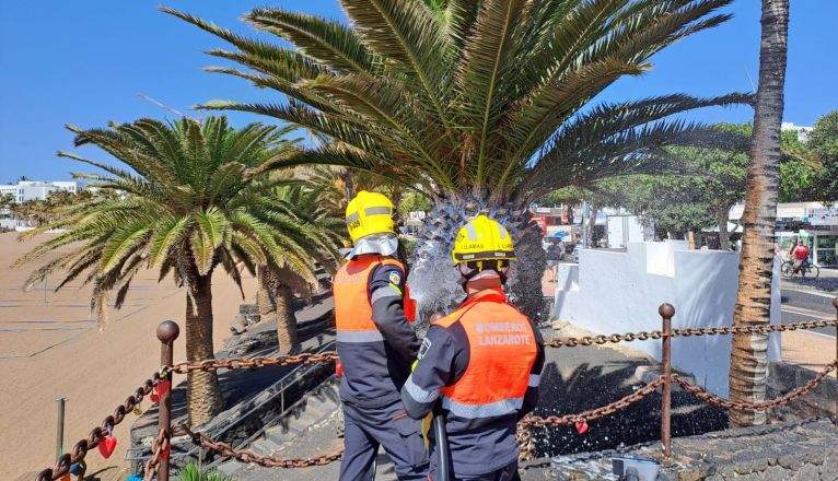El Cuerpo de Bomberos del Consorcio de Seguridad y Emergencias ha apagado este martes el incendio de una palmera en la Avenida de Las Playas de Puerto del Carmen.