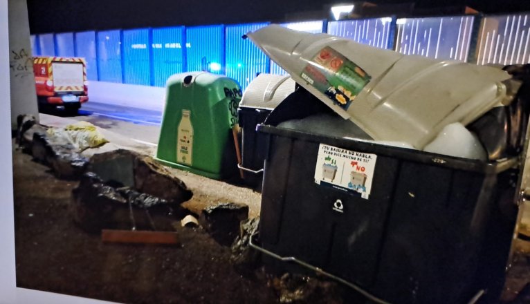 El primero de ellos tuvo lugar sobre las 3:10 horas en la calle Fayna donde ardía un contenedor de basura orgánica. Los efectivos extinguieron las llamas con agua y espuma. En el lugar de la intervención se encontraba presente una unidad de la Policía Local.