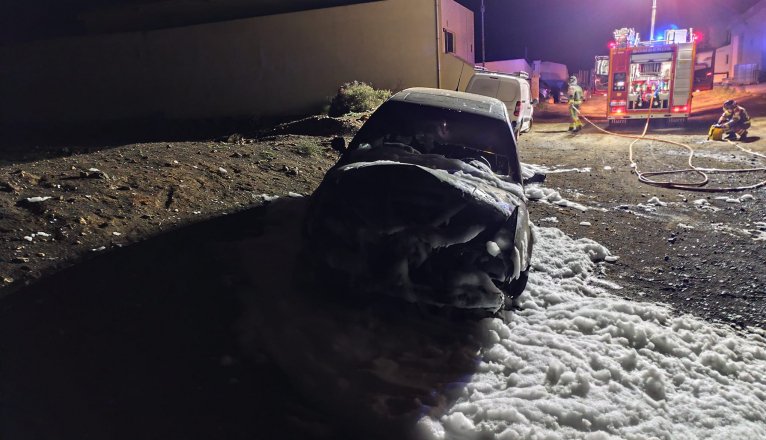 Bomberos del Consorcio de Seguridad y Emergencias han sofocado el incendio de un vehículo en el camino del Vallito de Uga, en Yaiza. Los hechos se produjeron a las 23.10 horas de la noche, cuando los bomberos del Parque Sur se tuvieron que trasladar hasta el lugar.