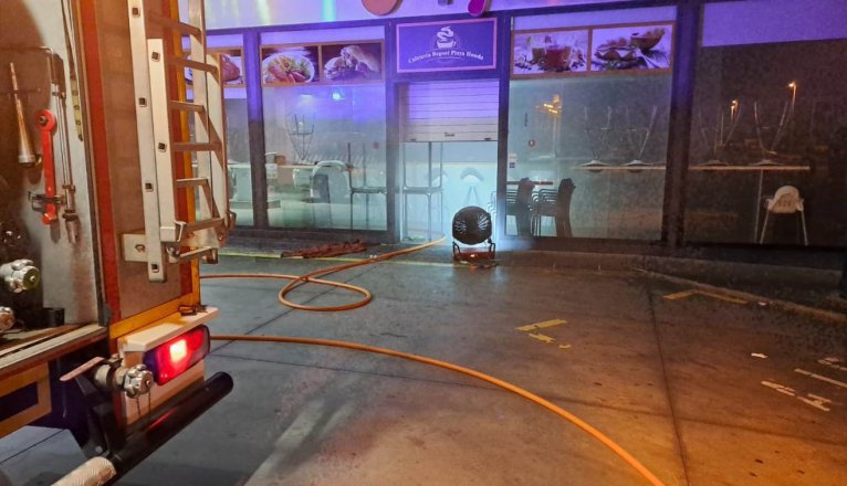 Horas después, sobre las 12 de la medianoche, el Consorcio fue alertado de un incendio de una cafetería junto a la gasolinera que está en la Avenida Mamerto Cabrera, también de la localidad turística de Playa Honda. Una vez en el servicio, la Policía Local les facilita la entrada a local y localizaron el incendio que afectaba al horno. Rápidamente lo extinguieron con agua y posteriormente lo ventilaron.