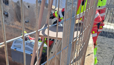 Los bomberos rescataron este martes a un gato que se encontraba atrapado en un estanque vacío en la calle Los Invernaderos, en el barrio capitalino de Argana Alta, segñun ha informado el Consorcio de Emergencias.