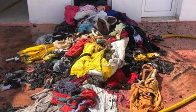 Los bomberos, tras comprobar que el fuego únicamente afectaba a la ropa y no a la lavadora que había al lado, han procedido a la extinción de las llamas.