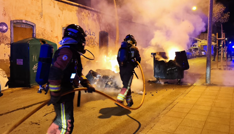 Mientras los bomberos se encontraban trabajando en la extinción de este incendio, recibieron el aviso de otro incendio de contenedores en la calle Francos, por lo que junto a la Policía Local se dirigieron al lugar donde ardía un contenedor de forma generalizada. Tras apagar las llamas y dejar las calles aptas para la circulación, finalizaron el servicio.