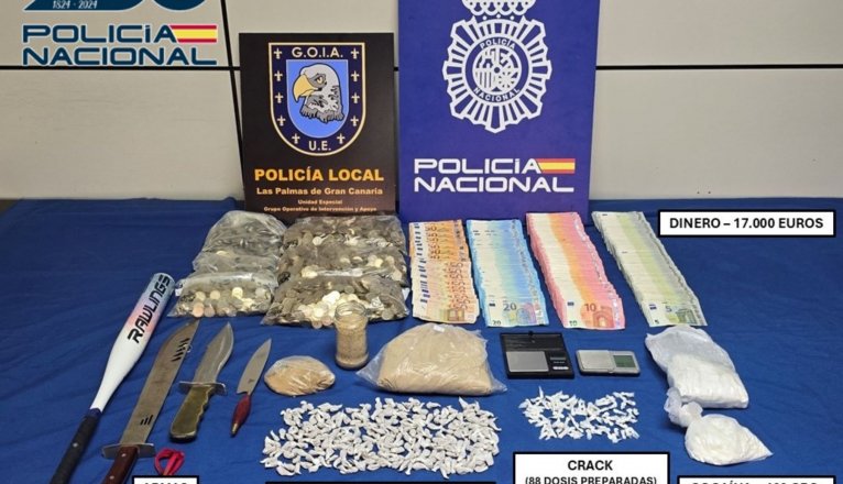 Agentes de la Policía Nacional, adscritos a la Unidad de Drogas y Crimen Organizado (UDYCO) de la Brigada Provincial de Policía Judicial de Las Palmas, en colaboración con el Grupo Operativo de Intervención y Apoyo - Unidad Especial (GOIA-U.E.) de la Policía Local de Las Palmas de Gran Canaria, han desarticulado un punto activo de venta de sustancias estupefacientes situado en el barrio de San José.