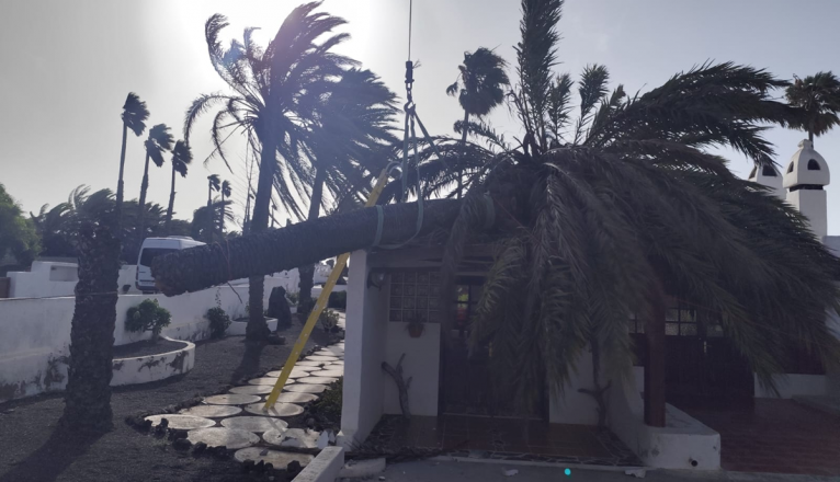 Una palmera cayó en la mañana de este lunes sobre una pérgola del centro de mayores de Las Cabreras, en el municipio de Teguise, generando una situación de riesgo para los usuarios de las instalaciones. La alerta fue dada a las 08:36 horas por un trabajador del centro mediante una llamada telefónica.