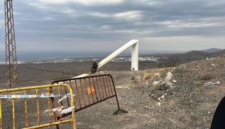 Un aerogenerador se ha caído sobre el tendido eléctrico en San Bartolomé y ha dejado sin suministro a varias zonas de la isla. Así lo ha informado el Consorcio de Seguridad y Emergencias en la mañana de este martes.