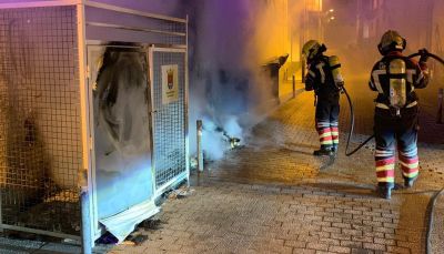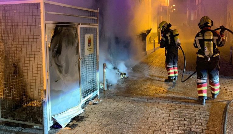 Los dos recipientes de basura orgánica quedaron inutilizables mientras que otro recipiente de recogida de cartón se vio afectado parcialmente