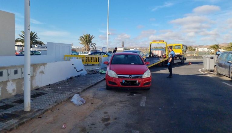 En la madrugada de este lunes 1 de enero, alrededor de las 3, se produjo un accidente en la entrada de Playa Honda desde el aeropuerto. Dos jóvenes chocaron contra los contenedores de basura y un coche que estaba aparcado en la zona. El impacto fue tal que también dañaron el muro de una obra nueva.