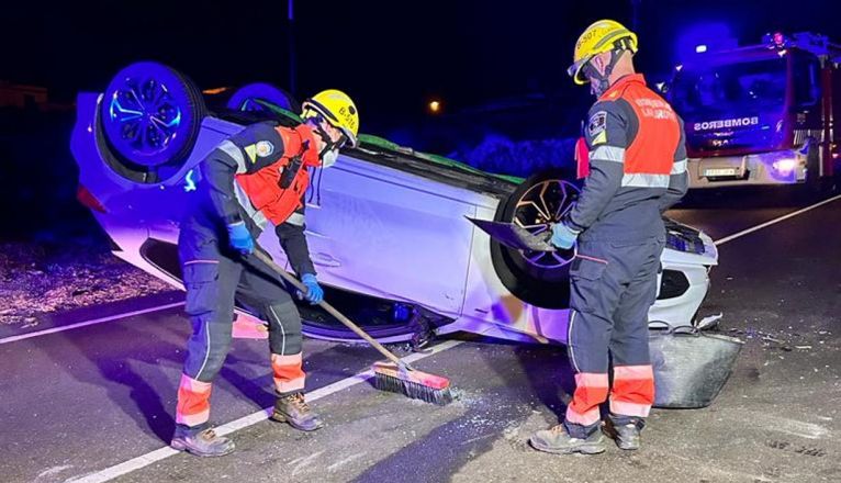 Un coche ha volcado este sábado tras impactar contra un muro en la LZ-35 cerca de Tías, según ha informado el Consorcio de Emergencias.. El conductor del vehículo ha salido por sus propios medios del vehículo y ha sido asistido por el personal sanitario.