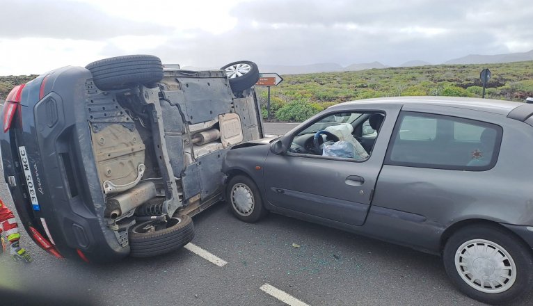 Un accidente de tráfico registrado a las 15.45 horas de este sábado 28 de febrero en el cruce de Los Jameos del Agua, en el municipio de Haría, se ha saldado sin heridos pese a la espectacularidad del siniestro.
