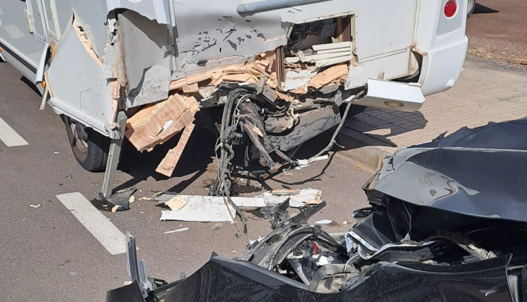 Un vehículo y una autocaravana sufrieron una colisión frontal sobre las 15.30 horas de este domingo en la Rambla Medular de Arrecife, según ha informado el CECOES. Además, debido al golpe, la autocaravana chocó también contra otro vehículo que se encontraba aparcado delante, según informan desde el Consorcio de Emergencias.