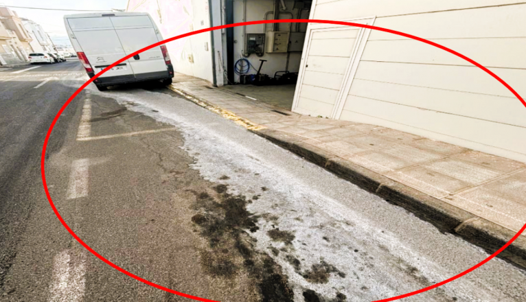 Agentes de la Policía Local de Arrecife, en sus tareas de investigación y seguimiento en los barrios de Arrecife, halló la presencia de una gran mancha en la vía pública en una calle del barrio de Argana Alta que procedía del interior de una nave donde se ejecutaban trabajos en su pavimento interior.