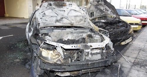 La Policía Nacional detuvo el pasado miércoles a dos individuos como presuntos autores del incendio de cinco coches en la calle Tofio la semana pasada. Los hechos se produjeron el pasado día 10 de febrero de madrugada cuando los supuestos pirómanos quemaron uno de los coches aparcados en la calle capitalina con una garrafa de gasolina causando daños materiales a cinco automóviles y a la fachada de un edificio.