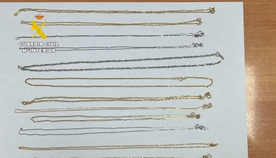 La Guardia Civil inició una investigación el pasado día 3 de julio a raíz de una denuncia de un ciudadano en la que comunicaba que autor/es desconocidos habían accedido, sin forzamiento, al interior de su joyería sustrayendo del interior de una vitrina una bolsa conteniendo 16 cadenas de oro.