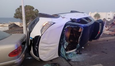 Dos hombres de unos 38 años resultaron heridos en la madrugada de este sábado, 9 de agosto, tras volcar el vehículo en el que viajaban en la calle La Palma, en Puerto del Carmen. El coche volcó lateralmente después de impactar contra otro vehículo que se encontraba estacionado, según ha informado el Consorcio de Seguridad y Emergencias.