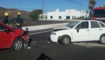 El accidente, que fue un choque frontolateral, tuvo lugar sobre las 17:50 horas, desplazándose hasta el lugar bomberos del Cosorcio de Seguridad y Emergencias A su llegada, los ocupantes de los vehículos ya habían sido evacuados por el SUC al Hospital Molina Orosa.