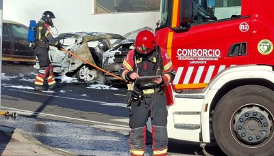 Dos coches han quedado completamente calcinados y un tercero, ha resultado dañado en un incendio declarado en la mañana de este sábado, en torno a las 9.15 horas, al final de la calle Gaida, en el punto donde se une con la calle Salinas, en Puerto del Carmen.