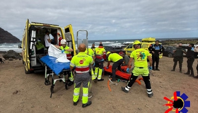 Junto con el personal del Servicio de Urgencias de Canarias, han atendido al accidentado, un varón de 50 años, de nacionalidad austriaca, quien a estaba siendo asistido por la ambulancia básica del SUC.