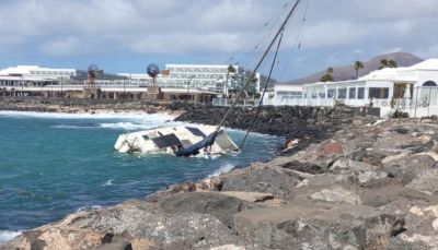 Un catamarán encalló este viernes en la escollera del puerto Marina Rubicón de Playa Blanca, según ha informado el Consorcio de Emergencias. Al parecer estaba anclado pero el oleaje y los fuertes vientos que reinan en la isla lo soltaron y se fue contra las rocas.