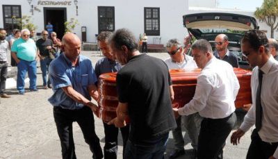 La alcaldesa de Arrecife, Ástrid Pérez también asistió al sepelio del integrante más joven de la Agrupación Folclórica Coros y Danza de Arrecife.
