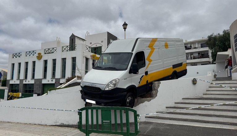 Según informan fuentes de la Policía Local de Tías a este medio, la furgoneta se encontraba estacionada en el aparcamiento de la zona y, "por motivos que se desconocen y con el conductor ausente, se puso en movimiento colisionando con el muro cayendo en su parte frontal hacia la acera".