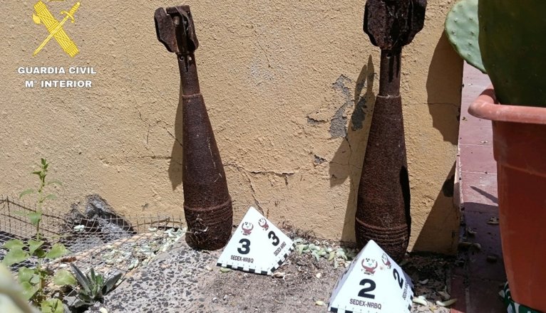 La Guardia Civil de Fuerteventura localizó el pasado 15 de abril, dos proyectiles de mortero en el interior de una vivienda de la urbanización Atalaya Dorada, en Corralejo, durante la ejecución de una actuación judicial.