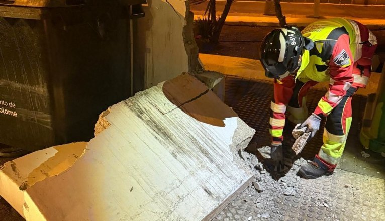 Tras ser alertados por la Policía Local, los bomberos se desaplazaron hasta el lugar para retirar los fragmentos de la pared, que fueron depositados en una zona segura.