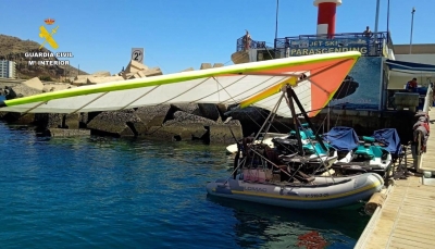 La Guardia Civil ha localizado una embarcación neumática acoplada a un ala delta provisto de motor sobrevolando el litoral de la zona sur de Gran Canaria.