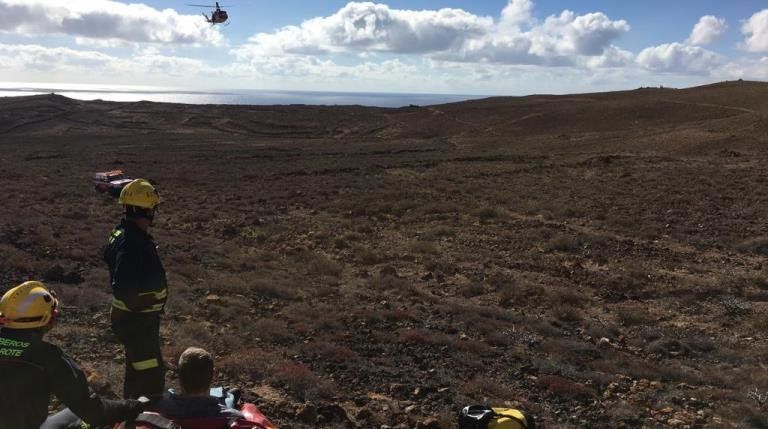 El helicóptero del GES y los bomberos han rescatado este viernes a un joven de 33 años de origen alemán herido grave en una pierna en Montaña Tinaguache. en el municipio de Teguise. Sobre las 09.15 horas , el Centro Coordinador de Emergencias y Seguridad (CECOES) del Gobierno de Canarias recibía una alerta en la que se comunicaba que un varón precisaba asistencia sanitaria en la zona mencionada.