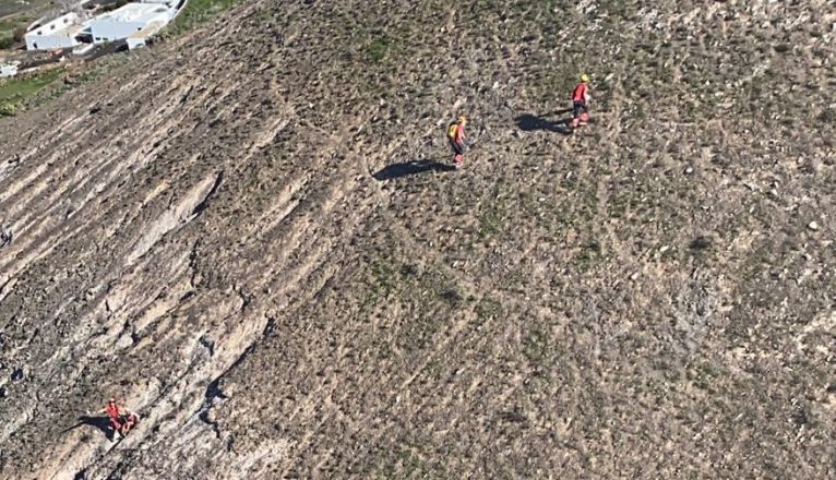 El helicóptero del GES rescató a una senderista en apuros en Montaña La Degollada en Yaiza..Sobre las 13.00 horas de este sábado el CECOES recibía una alerta en la que se informaba sobre la situación de una mujer que se encontraba en una zona escarpada y no podía seguir su camino.