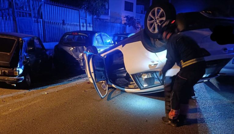 Una conductora resultó herida tras impactar con su coche contra otros dos estacionados y volcar en Puerto del Carmen. El accidente tuvo lugar sobre las 2 de la madrugada en la calle Palangre de la localidad turística.