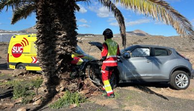 Un hombre ha resultado herido este martes al empotrarse con su vehículo contra una palmera en la LZ-2 a la altura de Playa Honda, según ha informado el Centro Coordinador de Emergencias (CECOES). En concreto, el coche se encontraba en el camino de tierra paralelo a la circunvalación.