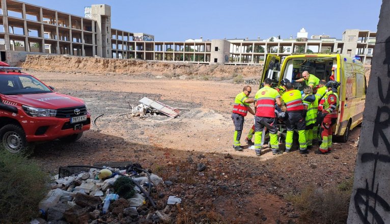Un hombre resultó gravemente herido este jueves por la mañana tras precipitarse en el interior de uno de los conocidos como “esqueletos” de Costa Teguise.