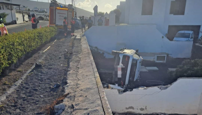 Tres personas han resultado heridas, entre ellas dos niños, tras volcar el coche en el que iban y caer de una altura de dos metros en San Bartolomé. El accidente ha tenido lugar sobre las 8.22 horas en la calle Circunvalación de la localidad.