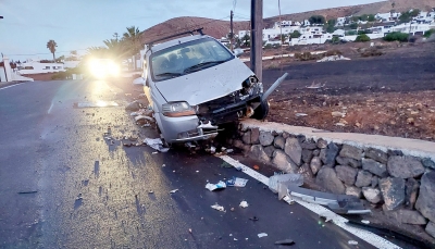 El conductor de un turismo impactó este pasado lunes contra un contenedor de basura orgánica y su soporte de hormigón y hierro. El siniestro tuvo lugar en la calle El Milano de Nazaret, en el municipio de Teguise en la mañana de este 28 de octubre.