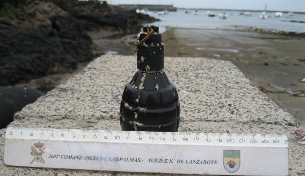El Grupo Especialista en Desactivación de Artefactos Explosivos (GEDEX) de la Guardia Civil en Lanzarote tuvo que destruir este domingo una granada de mano que fue localizada en el orilla del mar, más concretamente en el varadero del muelle de Órzola.