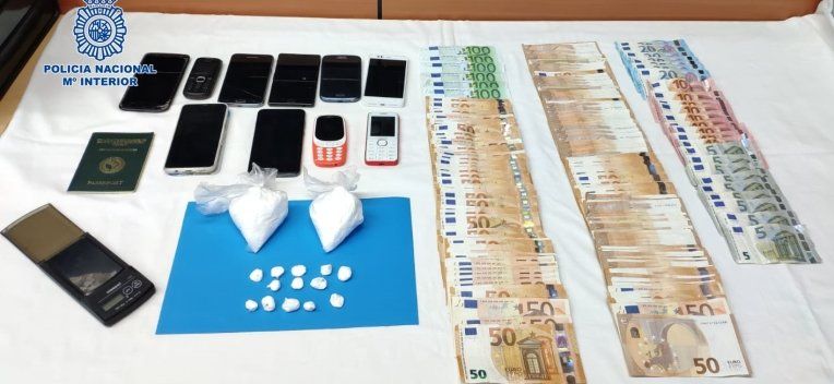 Los policías nacionales procedieron a la detención del presunto vendedor, quien se resistió activamente a su arresto, causando lesiones leves a dos funcionarios. En el cacheo de seguridad se le intervinieron un total de 13 bolsitas conteniendo cocaína, dos teléfonos móviles y 500 euros en efectivo.