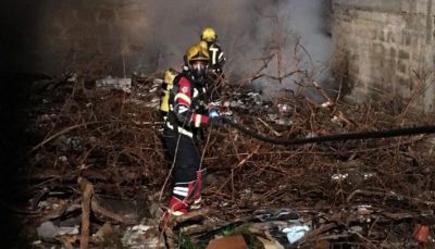 Los bomberos apagaron de madrugada el incendio en un solar en la calle Nuestra Señora de los Volcanes en Arrecife. Según informan desde el Consorcio el Cecoes les alertaba sobre las 02.00 horas de este lunes del incendio.