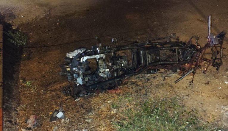 La moto quedó totalmente calcinada. Hasta el lugar también acudieron agentes de la Policía Nacional y Local de Arrecife.