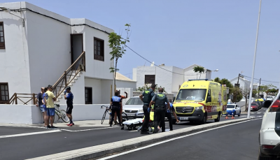 Dos ambulancias del Servicio Canario de Urgencias (SUC), una de soporte vital básico y otra medicalizada, se han trasladado en la mañana de este domingo hasta San Bartolomé para asistir a una persona que fue arrollada por un ciclista en mitad de la calle, según ha informado el Centro Coordinador de Emergencias.