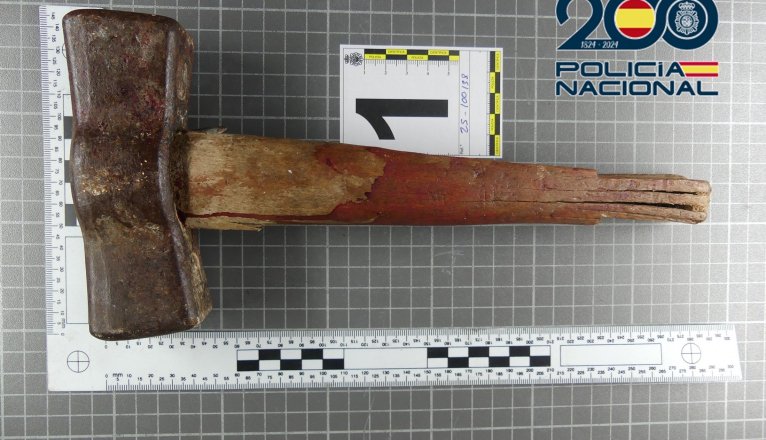 Los agentes realizaron una Inspección Ocular Técnico Policial en el lugar de los hechos, en la que se localizó el arma empleada por el arrestado, un martillo de grandes dimensiones, con evidentes restos de sangre.