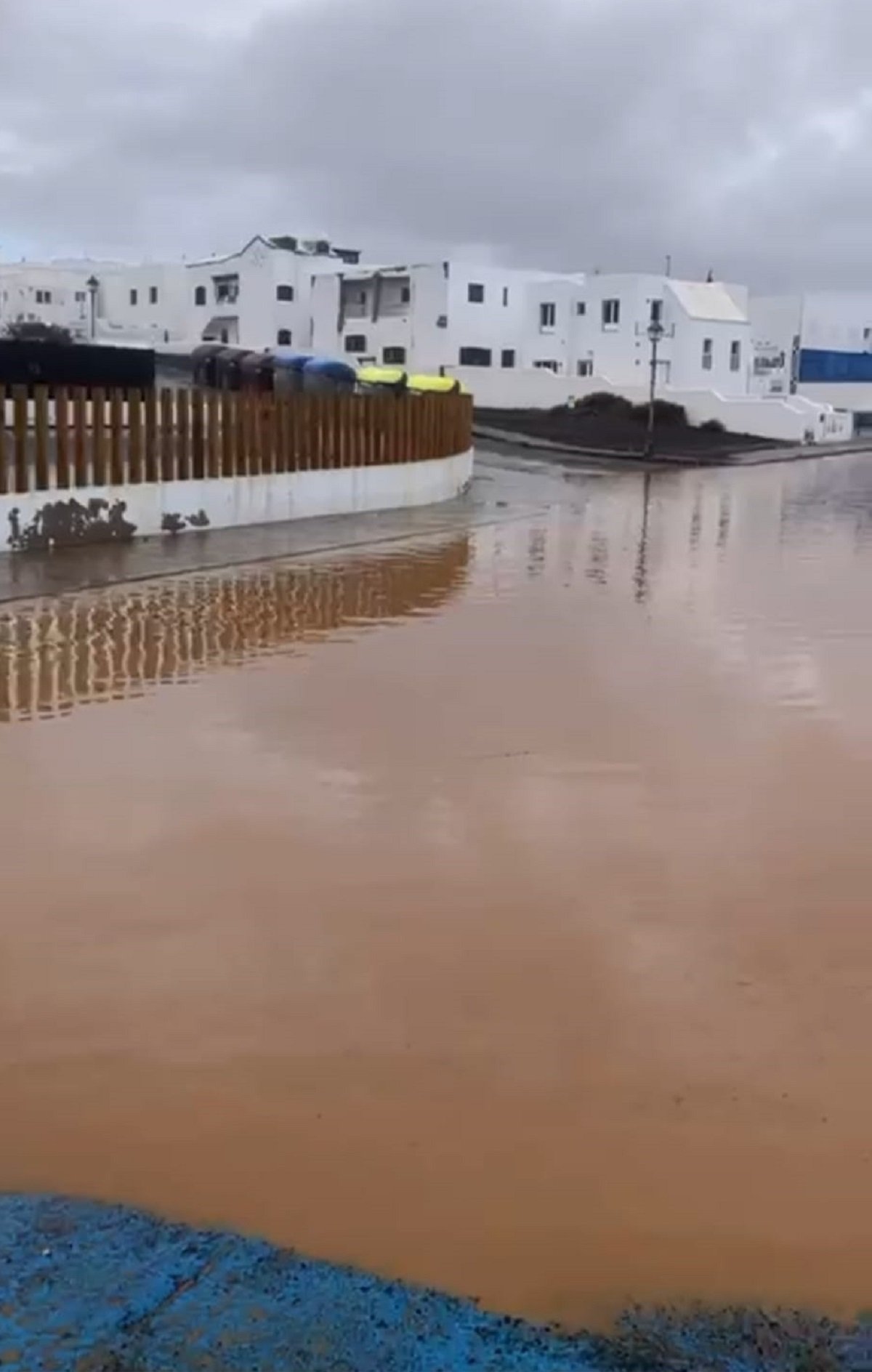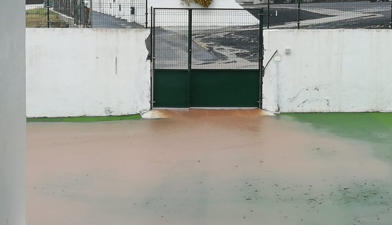 Asimismo, también tuvieron que actuar ante la inundación del colegio San Juan de Día de Haría. Una vez en el lugar comprobaron que la rejilla de drenaje del agua estaba obstruida, llena de arena, por lo que se procedió a su limpieza.