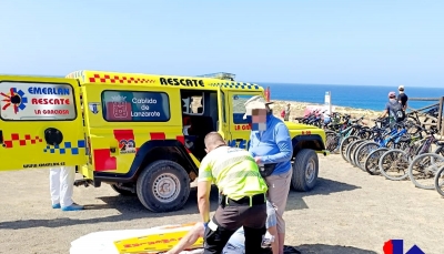 Los sanitarios le administraron analgesia, lo inmovilizaron y el accidentado fue trasladado hasta el Centro de Salud. Desde allí, fue evacuado por vía marítima hasta Lanzarote, donde lo recibió una ambulancia del Servicio de Urgencias de Canarias a las 15.35 horas.