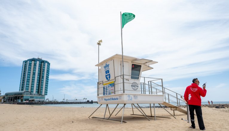 El equipo de socorristas del Ayuntamiento de Arrecife en la playa de El Reducto rescató a dos chinijos, un niño y una niña de ocho y nueve años, respectivamente, que jugaban en un bote inflable y habían sido arrastrados por el viento y la corriente.