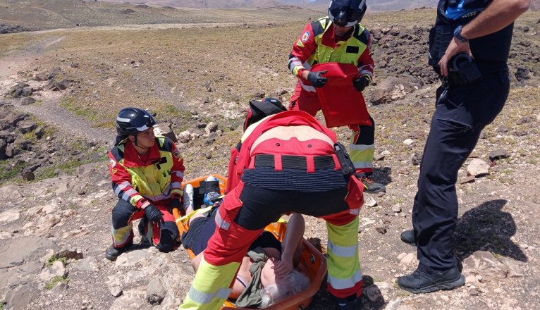 Posteriormente, la afectada fue colocado en una camilla nido y trasladada con la ayuda de la Policía Local hasta el vehículo Romeo 2. Desde allí, fue evacuada hasta una ambulancia del Servicio de Urgencias Canario (SUC), cuyo personal se hizo cargo del herido.
