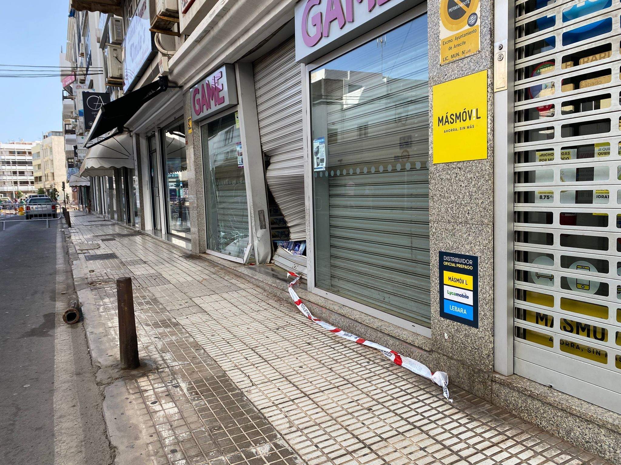 En la madrugada de este domingo en torno a las cinco de la mañana la tienda de videojuegos Game de Arrecife sufrió un robo. Los indicios indican que se trata probablemente de un alunizaje y que fue el choque de un vehículo contra el escaparate del local, ubicado en la calle Coronel Ildefonso Valls de la Torres, el que habría roto la valla y permitido entrar al interior del local.