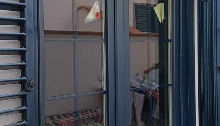 En concreto, el material sustraído comprende tres ventanas, una puerta balconera y una puerta de entrada, todas en PVC con refuerzo de perfil y cristales acústicos. El color de este material en el exterior es azul, mientras que en su interior es blanco.