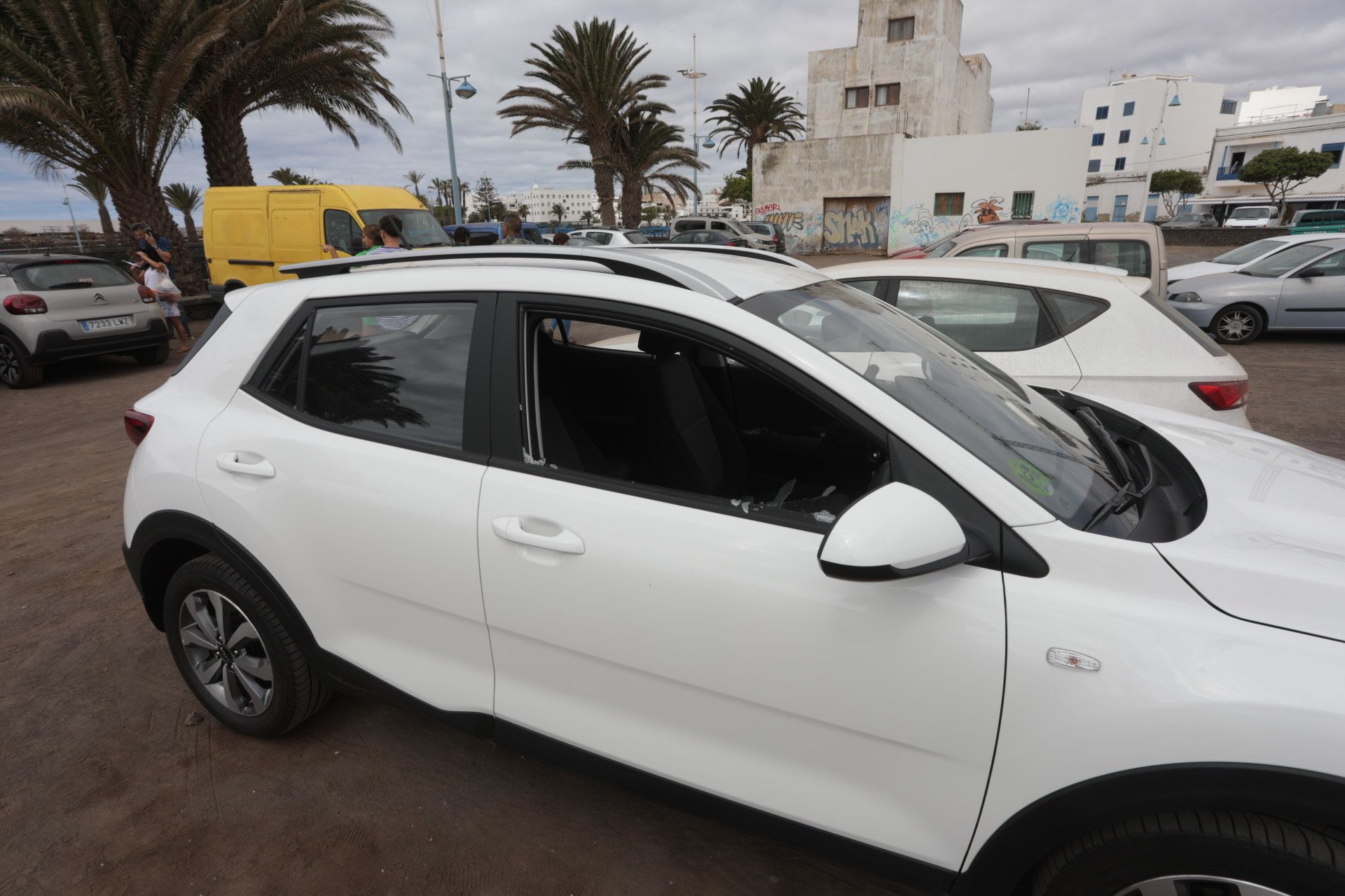 Más de una decena de coches han amanecido este domingo con los cristales rotos en la zona del aparcamiento de Ginory en Arrecife.